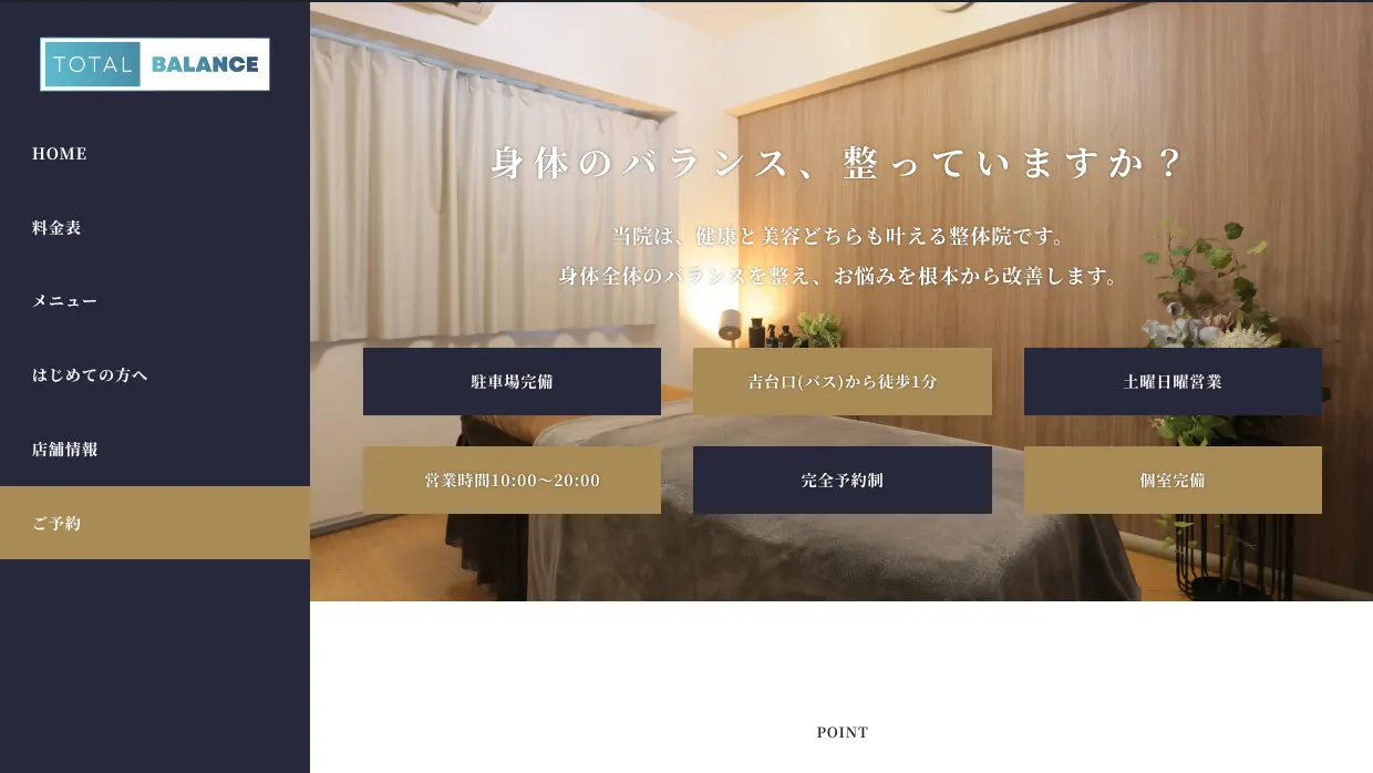 トータルバランス整体院様のホームページを作成しました